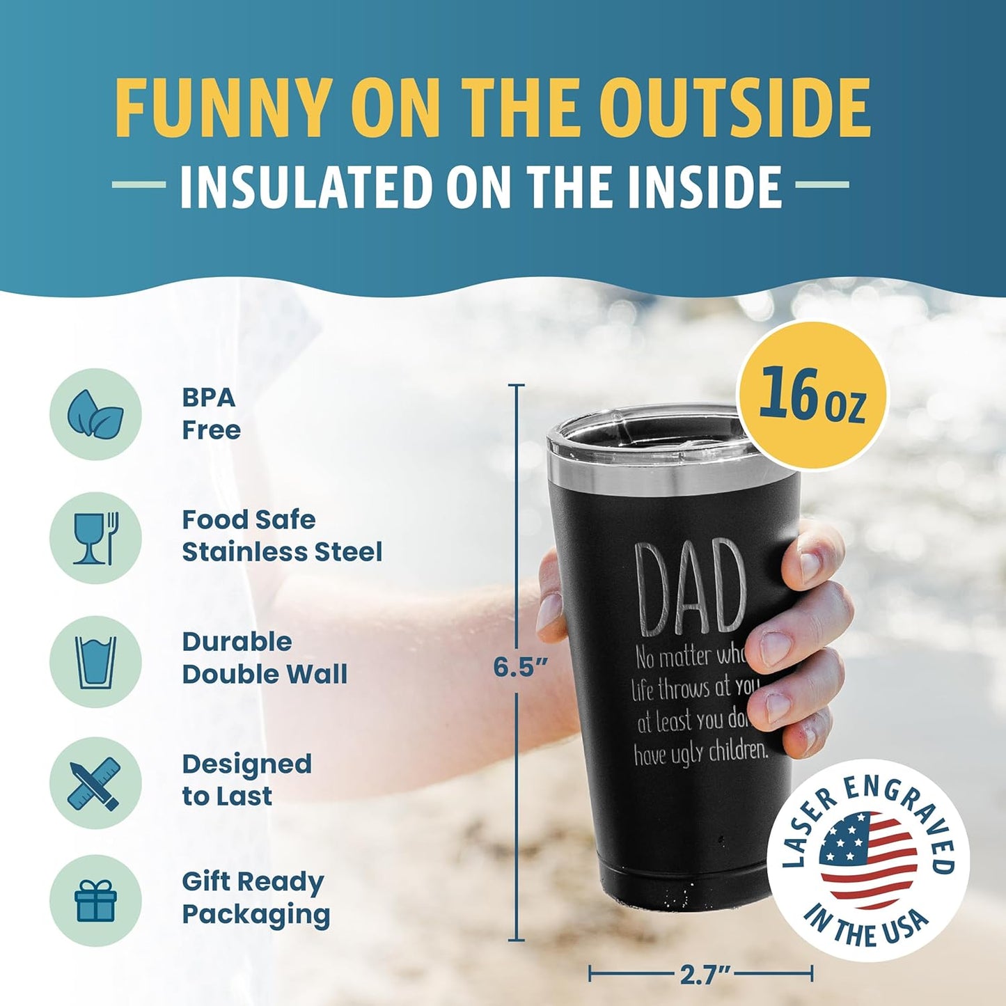 - Add Fun To Their Morning Routine - A thoughtful and unique gift for your daddy. This Insulated coffee mug with lid looks great while keeping his favorite drinks hot or cold for hours. A fun gift that will make him and others laugh when they see it.