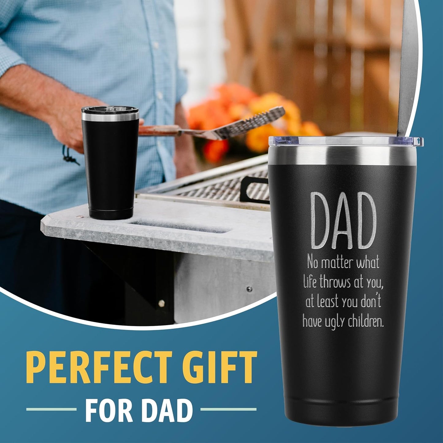 Coffee Tumbler with Lid - Funny Coffee Tumbler - Humorous Father'S Day Present - from Daughter or Son - Dad at Least You Don'T Have Ugly Children - Dad Tumbler - Coffee Mug - 16 Oz Tumbler