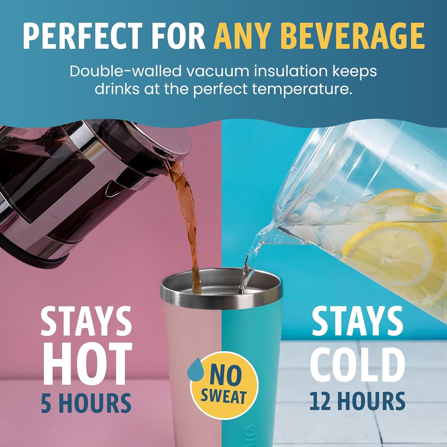 - Double-Wall Insulated Travel Mug - Our vacuum-insulated tumblers are designed to keep the desired temperature of your drinks for hours. Made from premium 304 18/8 food-grade stainless steel for durability and includes a press-in-tight lid to minimize spills.