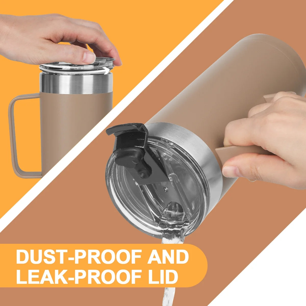 - SUPPORTS YOUR ACTIVE LIFESTYLE - Conveniently sip in style. Our spill-proof travel mug is crafted sleek with a loop square handle for a comfortable grip. This to-go coffee mug fits well in standard cup holders. It can perfectly fit a car holder. Take your coffee cup to work, school, or travel.