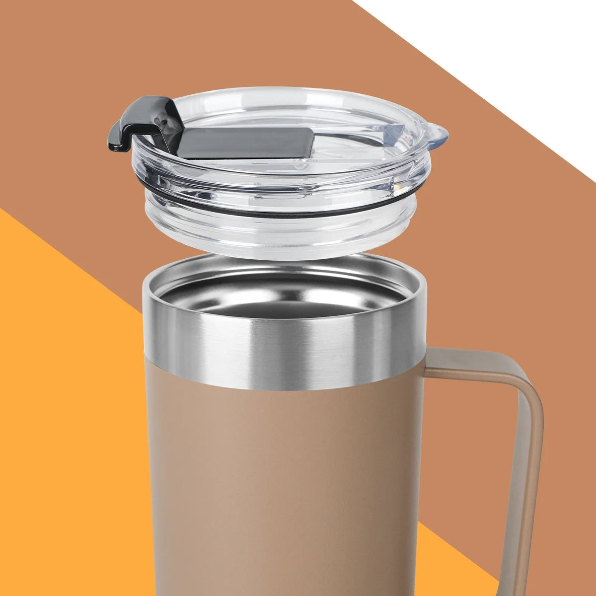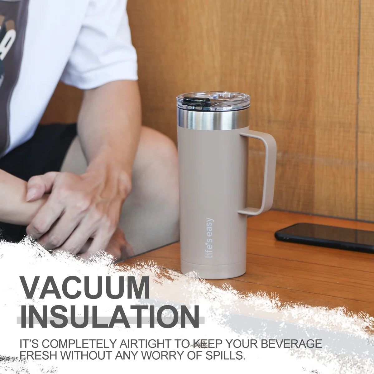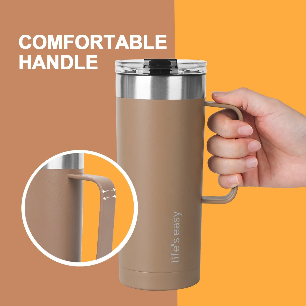 Life’S Easy - Stainless Steel Mug with Handle, Vacuum Insulated Mug for Hot and Cold Drink, Leak-Proof, Spill-Proof, Brown, 20 Oz